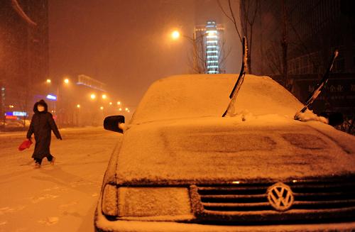 11月22日,一位沈陽市民穿著厚厚的棉衣在街上行走。當(dāng)日晚,受冷空氣影響,沈陽迎來大范圍降溫和降雪,降雪給市民出行帶來極大不便。