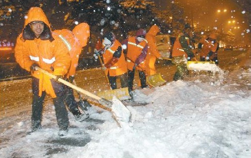 每當(dāng)大雪來臨時,市民們都想快點回家,可是有一批人得準(zhǔn)備好向外出發(fā)。 對!這就是具有“城市美容師”之稱的環(huán)衛(wèi)工人。 昨日沈陽暴雪,沈陽全市的環(huán)衛(wèi)工人在雪地中度過了一個寒冷的夜晚。 連夜除雪 早上還得接著干 昨夜,記者在沈陽街頭,每隔一段路程就看到一批環(huán)衛(wèi)工人在掃雪。在北陵大街和昆山路交通崗北側(cè),有20余名環(huán)衛(wèi)工人在路上除雪。皇姑區(qū)建管局遼河城管所北陵大街環(huán)衛(wèi)班班長張東冬說,他們負(fù)責(zé)的區(qū)域就是北陵大街的全線,她早上不到6點鐘就從家出發(fā)了。 張東冬的家在西瓦窯,距離工作區(qū)域有20分鐘的路程。張東冬說:“早上還是正常的掃保作業(yè),中午所里開會說要下大雪,下午就開始作準(zhǔn)備,不到晚上8點就到掃保區(qū)域開始除雪了。” 當(dāng)記者問到除雪得干多長時間時,張東冬表示:“今天這場雪這么大,并且現(xiàn)在還在下,估計后半夜雪停后,還得干上一段時間,怎么也得干上一宿,北陵大街的機(jī)動車道才能見亮。明天早上還得接著除慢車道上的積雪,怎么也得連續(xù)干上24個小時,對于我們這是常事兒!” 拉開外衣 里面都結(jié)了冰晶 昨夜的大雪配合著大風(fēng)天氣,雪花被風(fēng)吹打到人的臉上都會有疼痛的感覺。入夜后氣溫迅速降低,夜間最低氣溫降到了-10℃。環(huán)衛(wèi)工人穿著厚厚的棉衣開始在寒風(fēng)中工作。張東冬告訴記者她穿了三層外衣,拉開最外層外衣的拉鎖,記者看見在外衣的里面已經(jīng)結(jié)了一層冰晶。 張東冬表示,這才干了3個小時,要是干上一晚上第二天回家脫下來的內(nèi)衣都能擰出水來。 夜間吃飯 迎風(fēng)就雪吃下 環(huán)衛(wèi)工人到了吃飯和喝水的時候是最難的了,他們到了飯點就只能在冰天雪地中吃飯。 一般到了吃飯的時候,所里會給大家?guī)砗酗垼滋爝好些,還能在街邊的門市網(wǎng)點里吃飯,要是到了深夜,網(wǎng)點都關(guān)門了,就只能在路邊吃飯了。晚上環(huán)衛(wèi)們都會吃些簡單方便的食品,沒等吃呢食物都已經(jīng)涼透了,時常飛舞的雪花還會到嘴里。喝水就更難了,帶的水不一會兒就涼了,有時候還會結(jié)冰。昨夜,皇姑區(qū)建管局遼河城管所所長曲樂平接受記者采訪時表示:“全所所有的環(huán)衛(wèi)都已上街除雪,會克服一切困難,保證23日早上機(jī)動車道清掃完成,明天還將對慢車道進(jìn)行除雪,保證市民出行順暢。” |